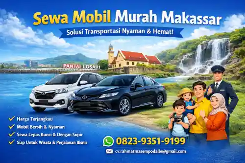 Maret 10, 2026Sewa mobil murah Makassar menjadi pilihan banyak orang yang ingin bepergian dengan nyaman tanpa mengeluarkan biaya besar. Banyak wisatawan dan warga lokal memanfaatkan layanan ini untuk berbagai kebutuhan seperti wisata, perjalanan bisnis, acara keluarga, hingga aktivitas harian.